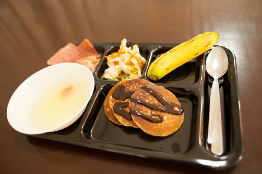朝はパンケーキの時もあれば、御飯の時もあります。