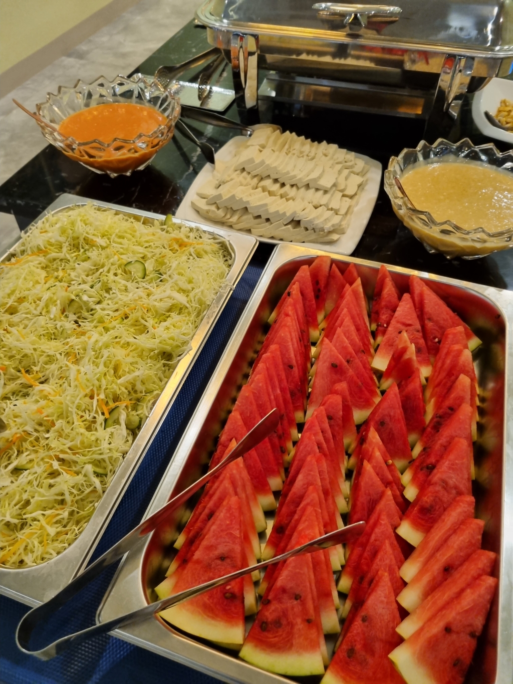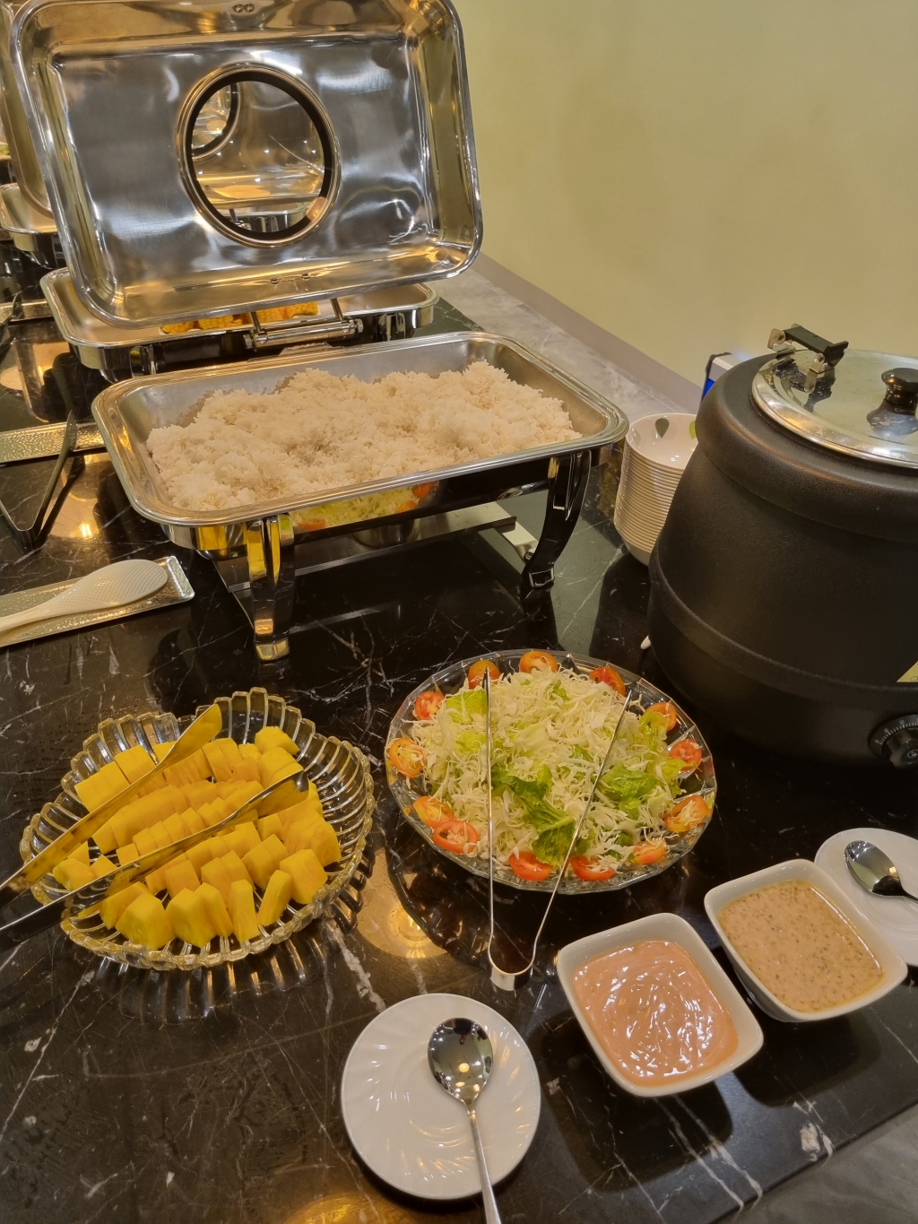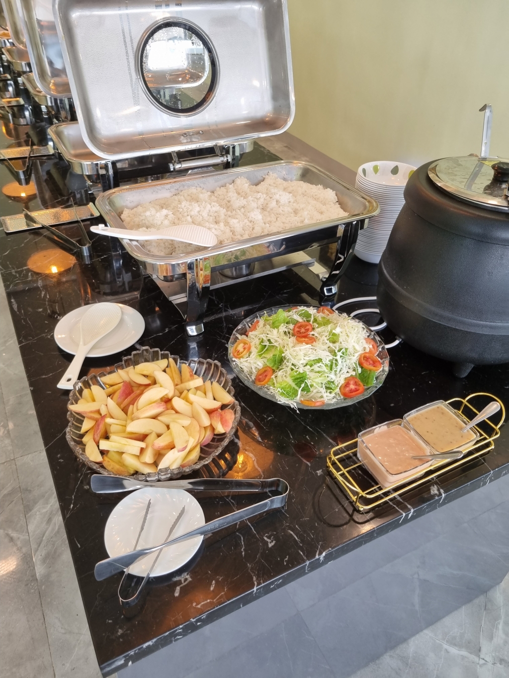 月〜土:1日 3食 が提供される。 日・祝日: 2食(ブランチと夕食)。 ビュッフェ形式での提供。 食事は、T-Shineホテル内の食堂で提供。 |