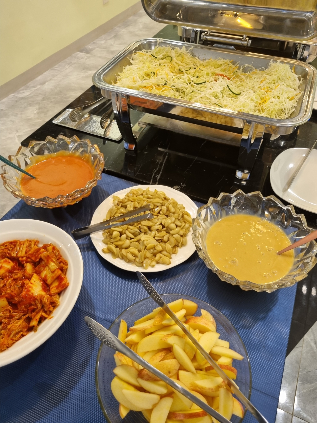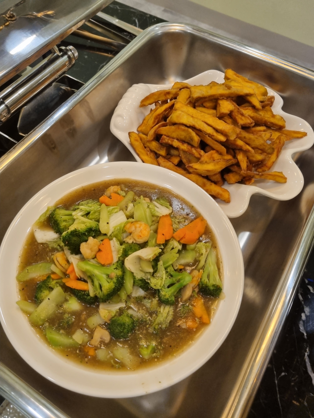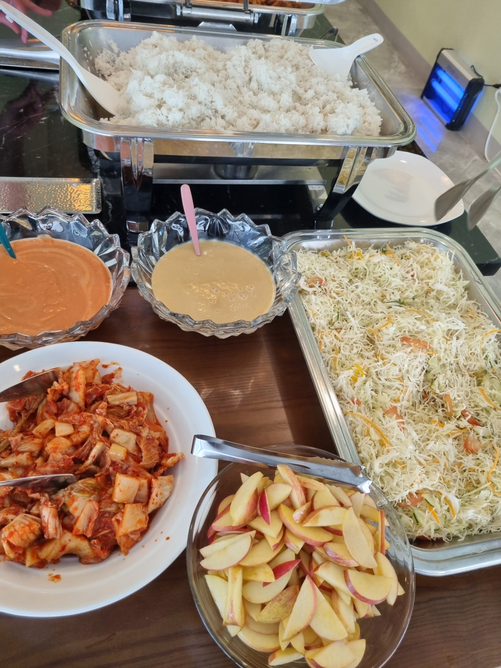 月〜土:1日 3食 が提供される。 日・祝日: 2食(ブランチと夕食)。 ビュッフェ形式での提供。 食事は、T-Shineホテル内の食堂で提供。 |