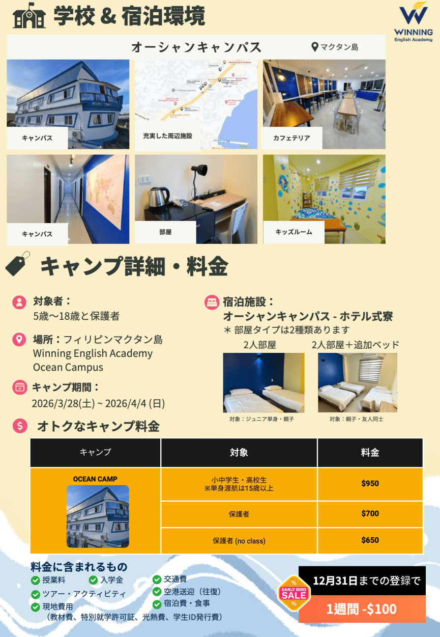 【セブ島】Winning English Academy 春のジュニアキャンプ開催決定!