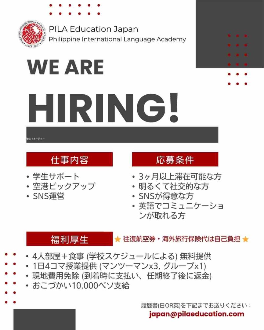 【セブ島/PILA Education】学生マネージャー&サポーターズ募集