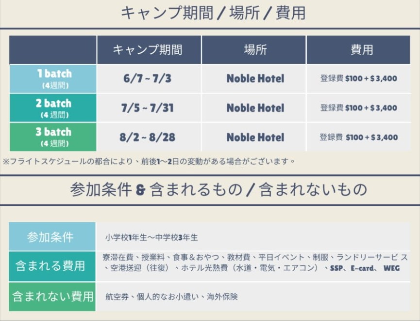 毎年満席となる人気プログラムのため、お早めのご相談をおすすめいたします。